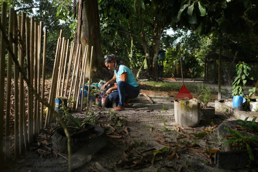 Está, por ejemplo, el agua de vidrio, biopreparado hecho de cal, ceniza y agua, que ayuda a enfrentar lo que las mujeres describen como un aumento en la humedad y la temperatura de la zona. También están introduciendo frutales amazónicos, como el asaí, en respuesta a los cambios climáticos que perciben.