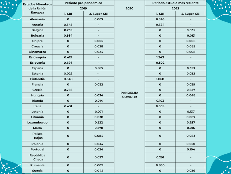 Entre los países que son eficientes tanto en el periodo precovid-19 (2019) como en el poscovid-19 (2022) están España, Francia y Croacia. En cambio, Finlandia e Italia aparecen entre los países ineficientes en ambos periodos. También hay países (Alemania y Grecia, por ejemplo) eficientes en un periodo e ineficientes en otro.