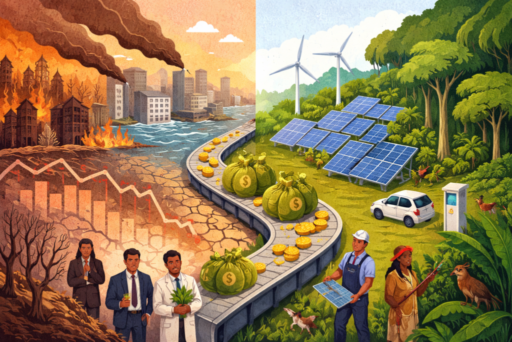 Independientemente del estancamiento político, el cambio climático y la degradación ecológica están generando un impulso económico innegable. A medida que las energías renovables se expandan, los combustibles fósiles se volverán aún menos competitivos. A medida que se degraden los ecosistemas, aumentará la carga fiscal. Los bancos centrales, los prestamistas soberanos, las agencias de calificación y los inversores privados ya han comenzado a calcular los costos de las pérdidas de cosechas provocadas por la sequía, la inundación de infraestructuras, la erosión costera, el colapso de la pesca y otros riesgos. En muchos países, el cambio climático está aumentando los costos de los préstamos, incrementando la deuda y reduciendo los puntos de crecimiento esperado.