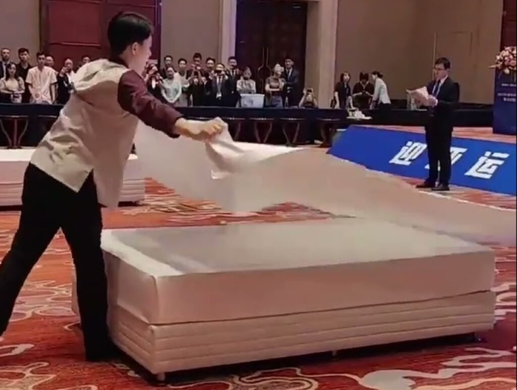 Cómo es el torneo de tender camas en China