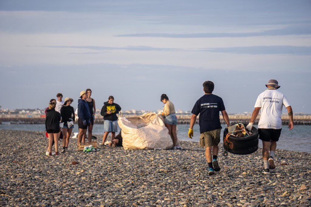Juan Coustet, coordinador de la fundación en Chubut, explicó que la elección del lugar responde a una dinámica geográfica específica. Por la curvatura natural de la playa, las corrientes de la marea y la cercanía con la desembocadura del río, ese sector actúa como una trampa de sedimentación donde terminan acumulándose los desechos que flotan en la bahía. La proximidad del puerto termina de configurar el escenario para que lo que se descarta en el agua vuelva a la tierra.